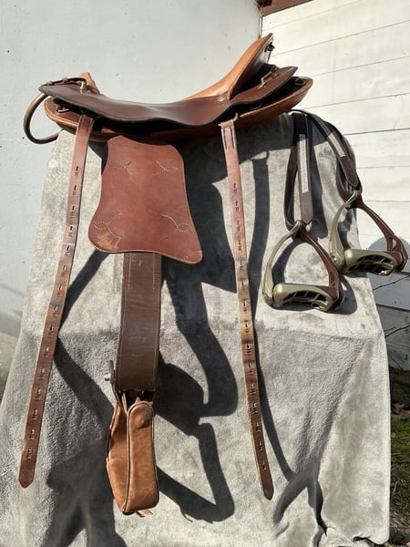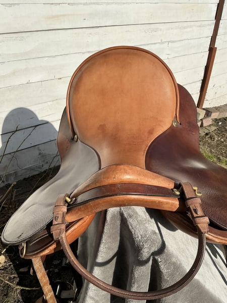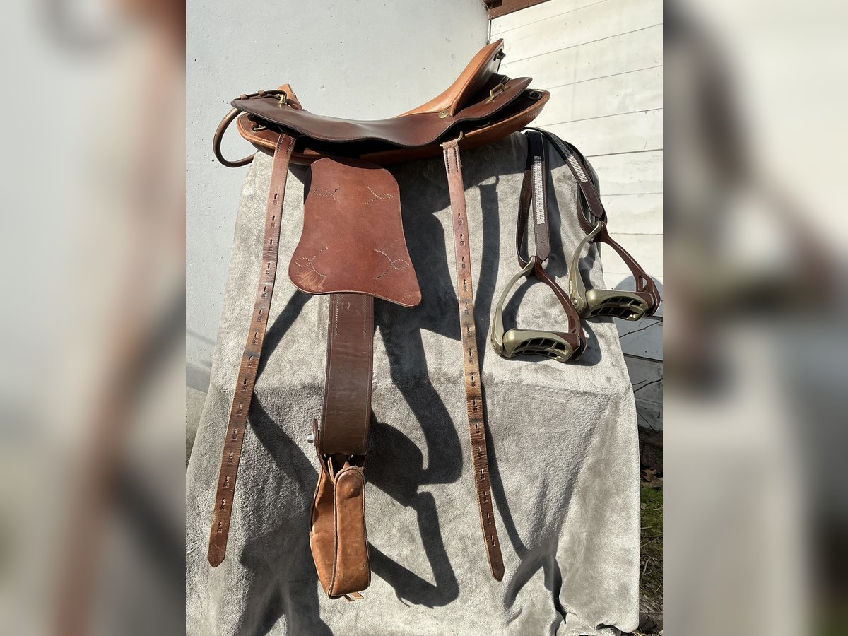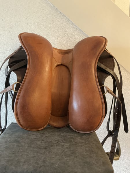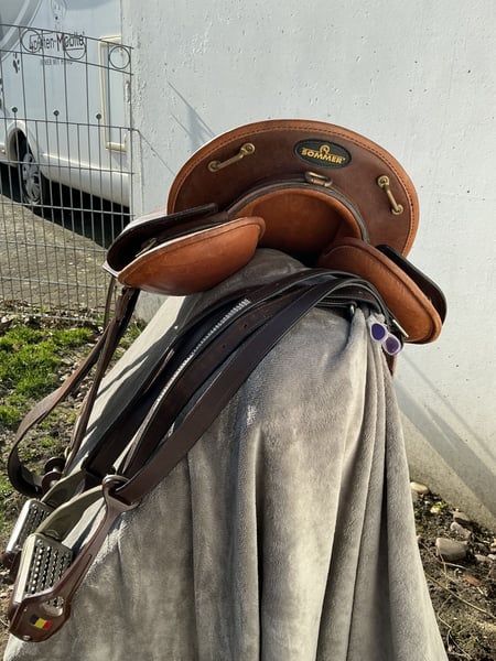 Dieses Set besticht durch seine hochwertige Verarbeitung und der Zweifarbigkeit. Er bietet Ihnen dank der durchdachten Sattelart optimalen Komfort und Kontrolle. Ideal für Sportler, die Wert auf Qualität und Funktionalität legen. Der Sattel stammt von der renommierten Marke Sommer, die den Bedürfnissen von Reiter und Pferd gerecht werden. Er wird mit Western Ausstattung Riemen und Steigbügeln inklusive Fuß Ausdreher und englischer Ausstattung mit normalen Steigbügelriemen inklusive Acavallo Sicherheitssteigbügeln abgegeben. Die Kammerweite beträgt 38. Bei mir lag er auf einem niederländischen Kaltblut. Er wurde 2019 von der Firma Sommer komplett überprüft, Sattelbaum erneuert und für mein Pferd eingestellt. er kann jederzeit durch einen Sattler neu angepaßt werden. Da dies ein Privatverkauf ist, keine Rücknahme oder Garantie.