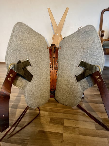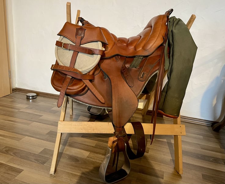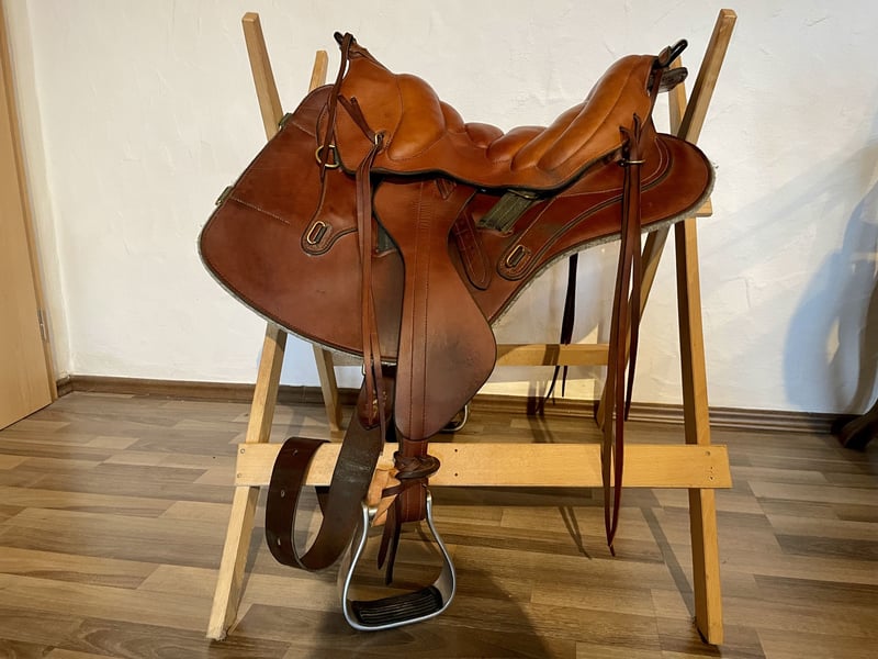Biete hier meinen tollen Wanderreitsattel aus der französischen Sattlerei Fahy zum Verkauf an. Dieser Sattel ist nach dem Vorbild historischer Militärsättel gefertigt und bietet Reiter und Pferd einen ausgezeichneten, balancierten Sitz. Daher ist er durchaus auch für die Dressurmäßige Arbeit geeignet. Er ist in einwandfreiem Zustand und wird mit passenden Vorderpacktaschen, Heu-bzw. Futtertasche verkauft. Preis VB. Auf Wunsch auch mit Pad und Gurt. Gerne mehr Infos unter: 0172/2616248