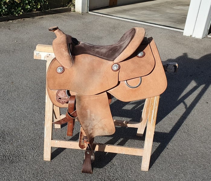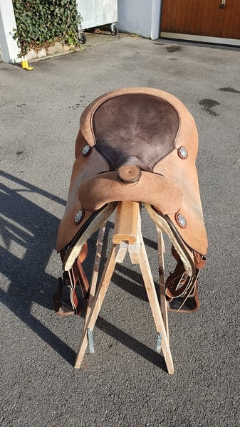 CR Sattel von 12/2024, roughout, II-er Baum, 16-Zoll Sitz.. Leichte Gebrauchsspuren, war nur 6 Monate auf dem Pferd. Wird verkauft, weil das Pferd bereits "rausgewachsen" ist.