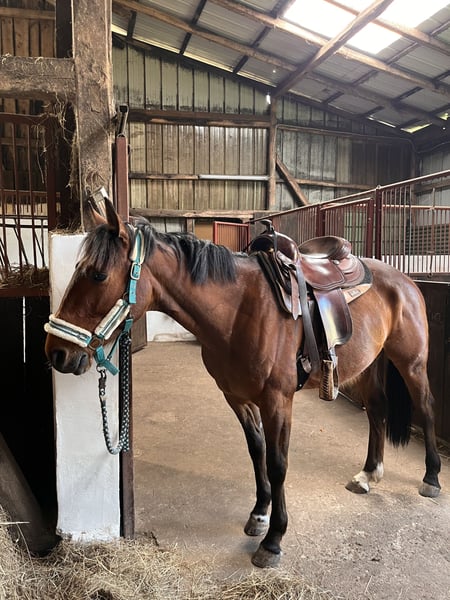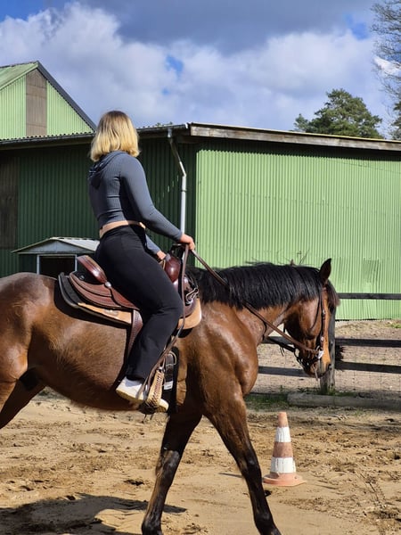 Ich verkaufe hier meinen hochwertigen Diamond C Westernsattel mit Holzbaum in sehr gutem und voll funktionsfähigem Zustand. Der Sattel wurde gepflegt und ist sofort einsatzbereit! ✔️ Details zum Sattel: • Marke: Diamond C • Modell: Allround / Trail (sehr bequem) • Baum: Holz hochwertig • Farbe: Dunkelbraun • Material: Qualitätsleder, gepflegt • Gewicht: angenehm leicht für einen Westernsattel • Gepolsterte Fender & bequemer Sitz Liegt sehr gut auf normal gebauten Pferden und auch sehr gute für kurze Pferde da er sehr gut geschnitten ist (siehe Fotos). Mehr Fotos gerne auf Anfrage,