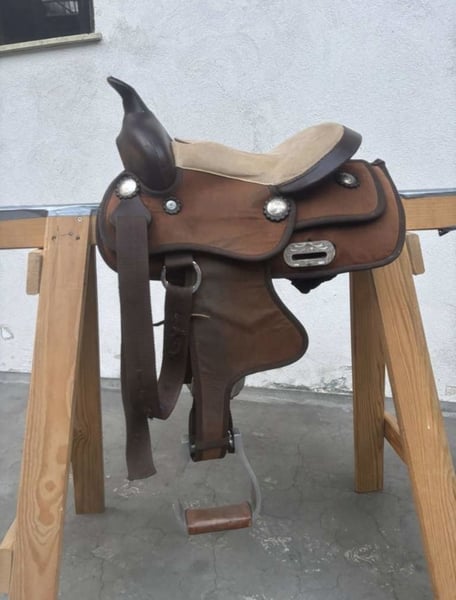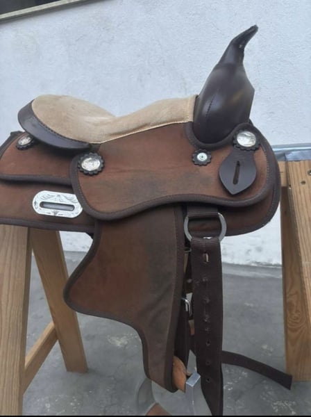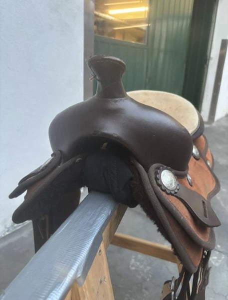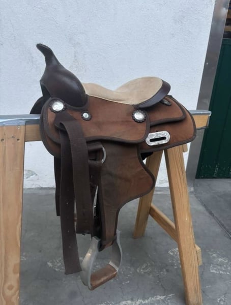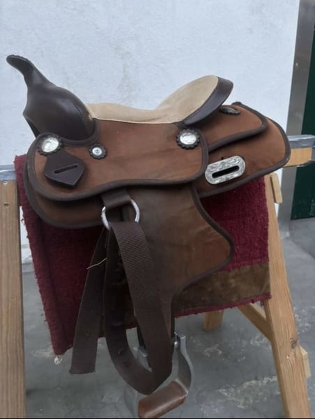 Verkaufe einen Kinder Westernsattel. Der Sattel ist in gutem Zustand und hat nur normale Gebrauchsspuren. Der Sattel wurde immer gut gepflegt und ist auch sauber da er ausschließlich auf einem Holzpferd benutzt wurde. Der Gurt hat zusätzliche Löcher die nicht sauber gestochen sind aber sie sind voll funktionsfähig und halten jedem Gewicht stand. (siehe Bilder) Außerdem gibt es Zubehör: -Sattelpad (rot) ist gekürzt damit es genau unter Sattel passt. Preis: 15€ Bei Fragen oder Interesse gerne melden.