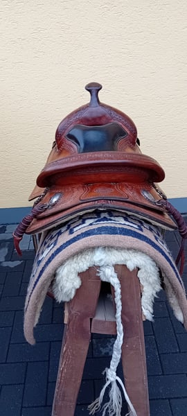 Ich verkaufe einen sehr schönen und gut erhaltenen Westernsattel von Continental Saddlery PULLMAN . * das Modell heißt "Snake Dance Reiner" * hat einen 15er Sitz (eher für Damen oder sehr schmale Herren geeignet) * der Sattel ist in einem guten, gebrauchten Zustand und hat altersentsprechend ein paar Abriebspuren * bei mir lag der Sattel auf einem Quarter Horse und einem Paint Horse Abholung bevorzugt. Der Versand würde 20-30€ extra kosten. Der Verkauf findet unter Ausschluss jeglicher Sachmängelhaftung statt. Keine Gewährleistung, keine Rücknahme! Über ernstgemeinte Anfragen würde ich mich freuen.