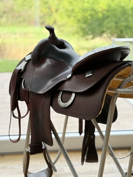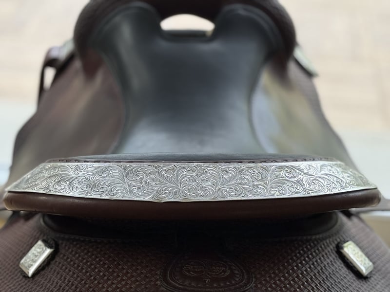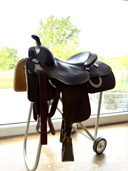 Echte Handarbeit der Firma Stegmann Saddlery; Neupreis von Mai 2017: 6.440€. Laut Stegmann müsste man für den Silberbeschlag alleine heute bereits ca 2000€ rechnen, da der Silberpreis so gestiegen ist. Eine Neuanfertigung des Sattels wäre heute in dieser Form also wesentlich teurer. Die Rechnung ist vorhanden und wird beim Verkauf mitgegeben. Wir sind absolute Stegmann Fans und können die Qualität der Schmuckstücke nur empfehlen. Leider passt dieser Sattel unserem nun älter gewordenen Quarter Horse Wallach nicht mehr. Details zum Sattel und zum Baum: 3,5 inch candle 7 inch gullet Mittlerer Schwung 16er Sitz (Equitation) Leder: Herman Oak Leder in Dark Oil mit Basket Beschlag: Echtes Stearling Silber Die Fender wurden von Stegmann Saddlery so angefertigt dass sowohl Personen mit knapp 1,90m als eher kleinere Reiter die passende Länge einstellen können. Der Sattel wurde im Mai 2017 ausgeliefert und nicht überstrapaziert, da wir auch oft nur mit Pad reiten. Besichtigung nach Absprache jederzeit möglich, Preis VB.