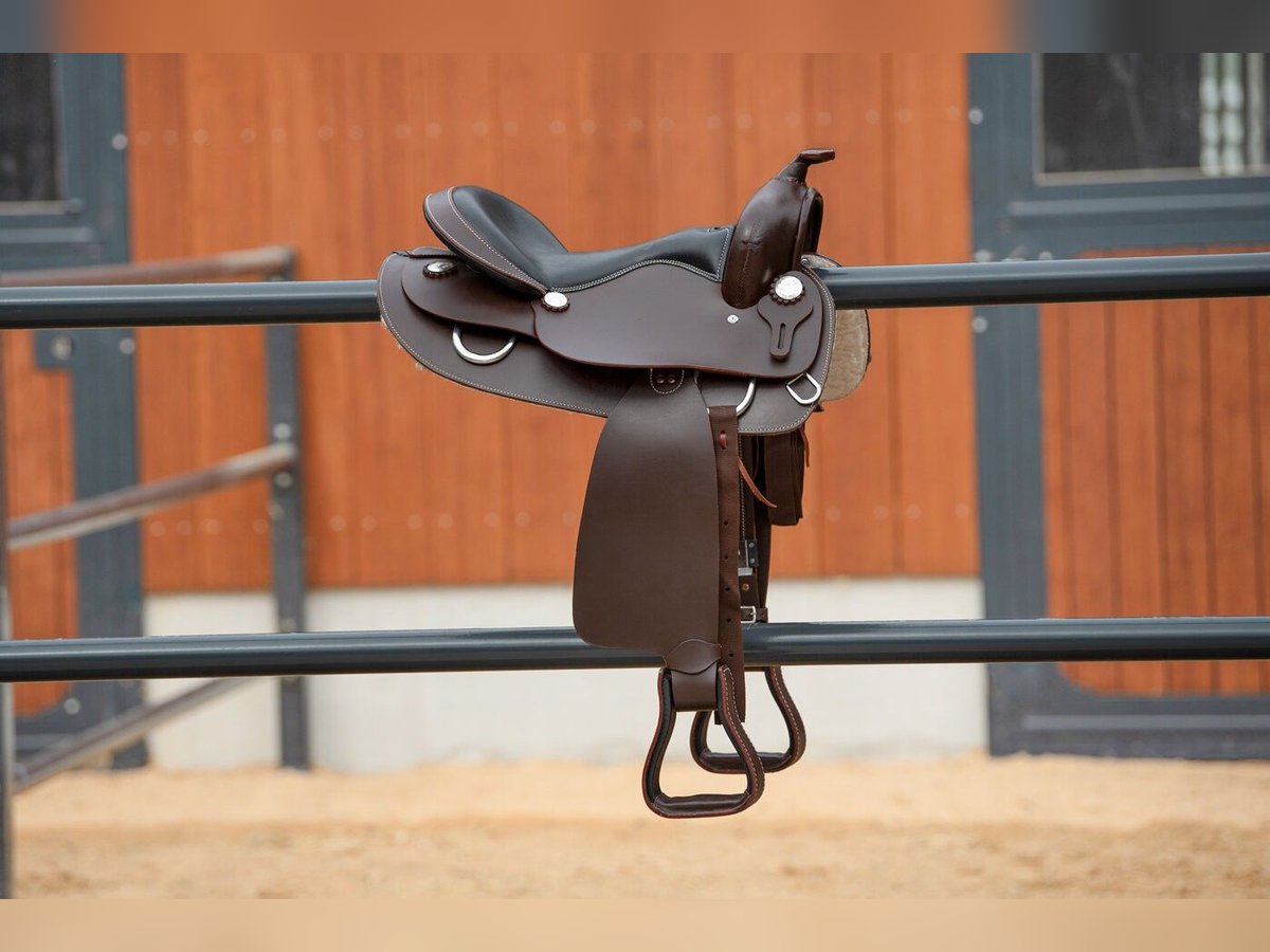 Schlichter, klassischer Round Skirt Westernsattel mit 16" Zoll, ideal geeignet für Pferde mit deutlich kürzerem Rücken. Der Sattel ist extra kürzer geschnitten und hat einen mittleren Schwung. Da er tendenziell eher schmal geschnitten ist, bietet er sich ideal für junge Pferde an, bsp. zum Anreiten, da der Sattel verhältnismäßig auch etwas leichter ist. Diese Passform passt laut Hersteller den meisten Pferden und eignet sich daher ideal für den Start ins Westernreiten. Inklusive Nylon Off-Billet und Tie Strap zu verkaufen. Die Beschläge sind aus rostfreiem Edelstahl. Der Sattel ist komplett aus Echtleder und hat eine sehr angenehme Sitzfläche. Der Sattel wird komplett neuwertig verkauft - er lag nur zur Anprobe auf unserem Pferd und passte leider nicht, da das Pferd doch deutlich zu breit war. Der Hersteller hat den Sattel jedoch nicht mehr zurück genommen, daher wird er komplett unbenutzt verkauft. Der Neupreis des Sattels lag im Februar 2026 bei 600 EUR. Der Sattel kann gegen Vorkasse und Übernahme der Versandkosten auch gerne versendet werden.