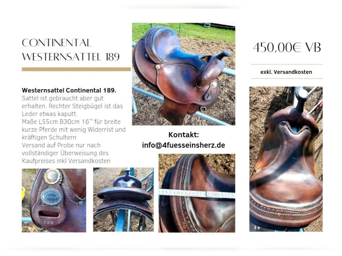 Westernsattel Continental 189 Sattel ist gebraucht aber gut erhalten. Rechter Steigbügel ist das Leder etwas kaputt siehe Bilder. Maße siehe Bilder. Versandkosten übernimmt Käufer. Kein Versand auf Probe keine Rücknahme der Ware. VB gerne auch ein passendes Angebot