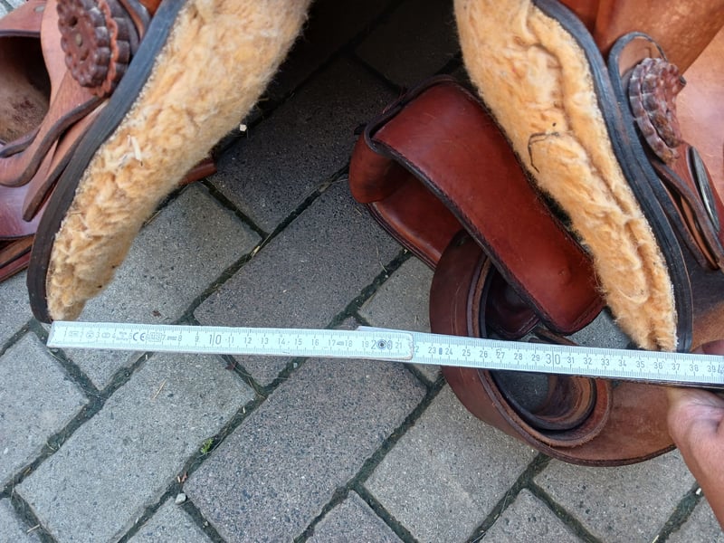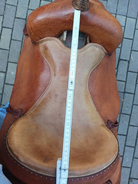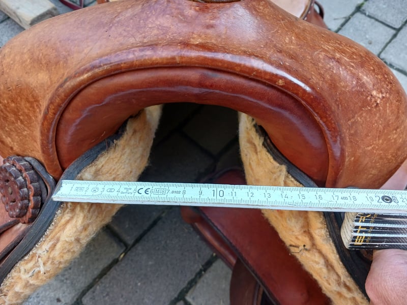 Westernsattel Deuber & Partner Modell 1400/02/16 lag auf einer QH-Stute Mit Steigbügel und Fender, ohne Gurt