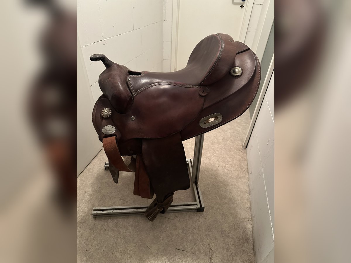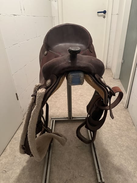 WI Westernsattel – Custom Made Western Imports Verkaufe meinen gebrauchten WI Westernsattel (Custom Made Western Imports) aus braunem Leder. Der Sattel ist stabil gebaut und eignet sich gut für Freizeit- und Geländeritte. Er befindet sich in gebrauchtem Zustand. Das Leder ist noch stabil und der Sattel wurde regelmäßig gepflegt. Die dekorativen Conchos und die Steigbügel sind vorhanden. Details: • Marke: WI – Western Imports • Modell: Custom Made • Farbe: Braun • Zustand: gebraucht mit üblichen Gebrauchsspuren • inklusive Steigbügel und Fender Der Sattel kann gerne vor Ort angeschaut werden. Preis: 300 VB Privatverkauf – keine Garantie oder Rücknahme.