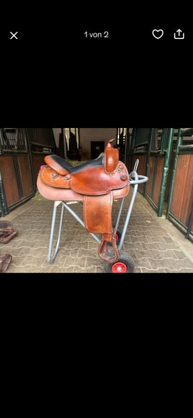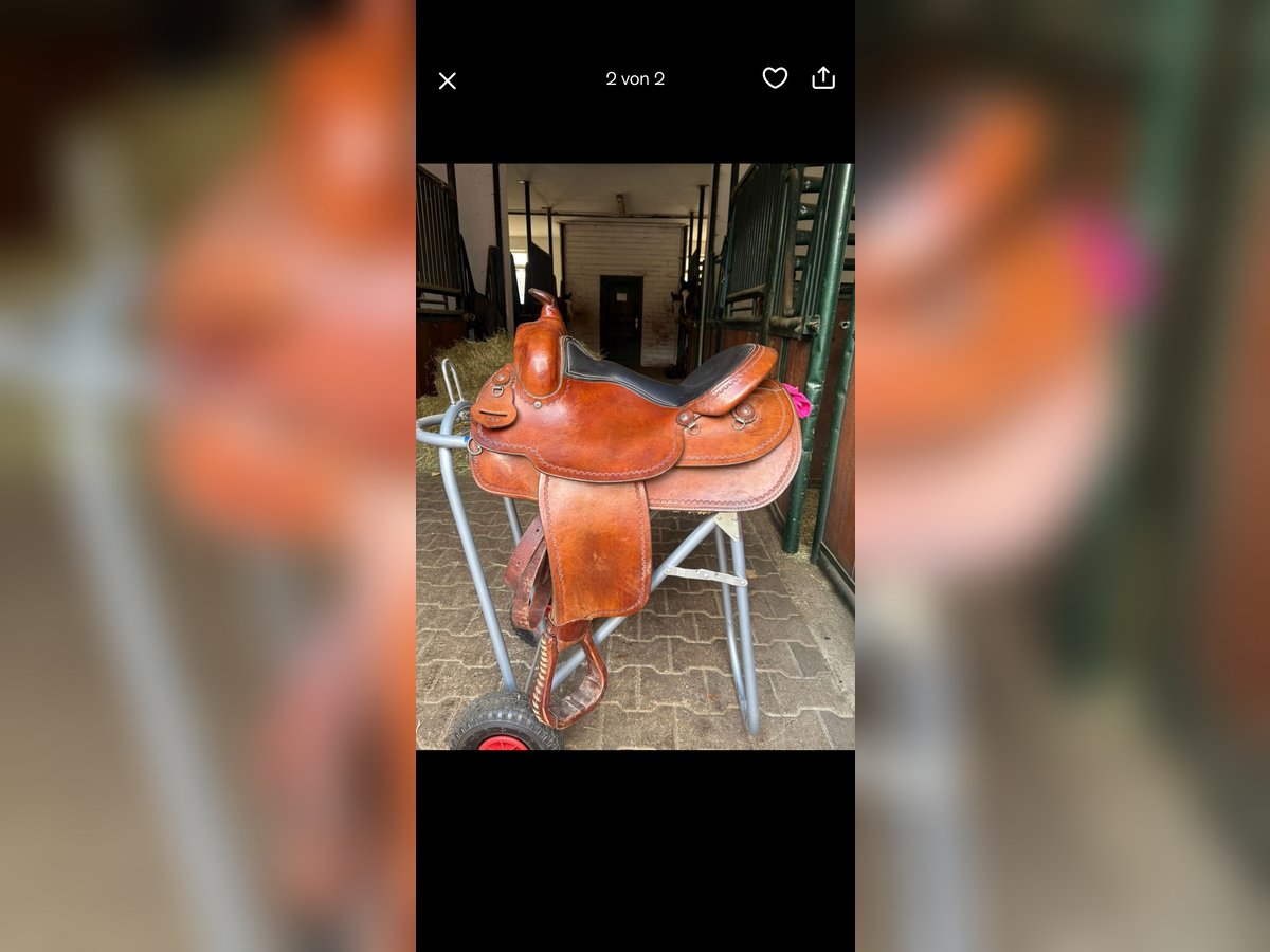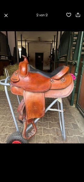 Westernsattel Länge: 63,5 cm Sitzgrösse: 40 cm 16“ Kammerweite: 20 cm Dem Alter entsprechende Gebrauchsspuren.