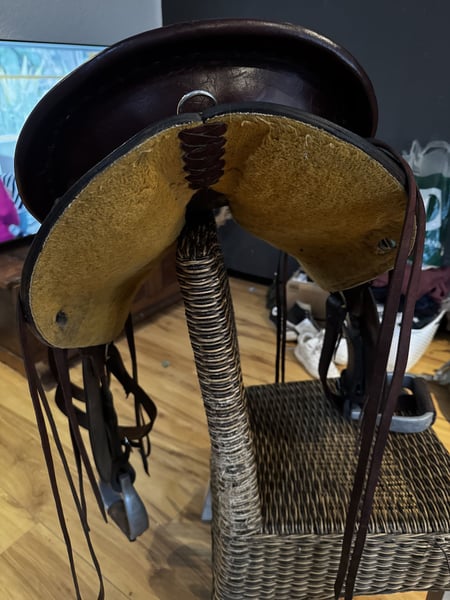 Roundskirt der Marke Deuber und Partner Regelmäßig gebraucht und vollständig intakt und sofort einsatzbereit. Inklusive Metallbügel, Sattelgurt und bei Bedarf auch mit einem (älteren) Westernpad. Maße siehe Fotos Baumgröße 4 Sitzgröße 16 Zoll Gut geeignet für kurze Pferde Versand nur nach Absprache und Übernahme der Kosten (wahrscheinlich Sperrgut)
