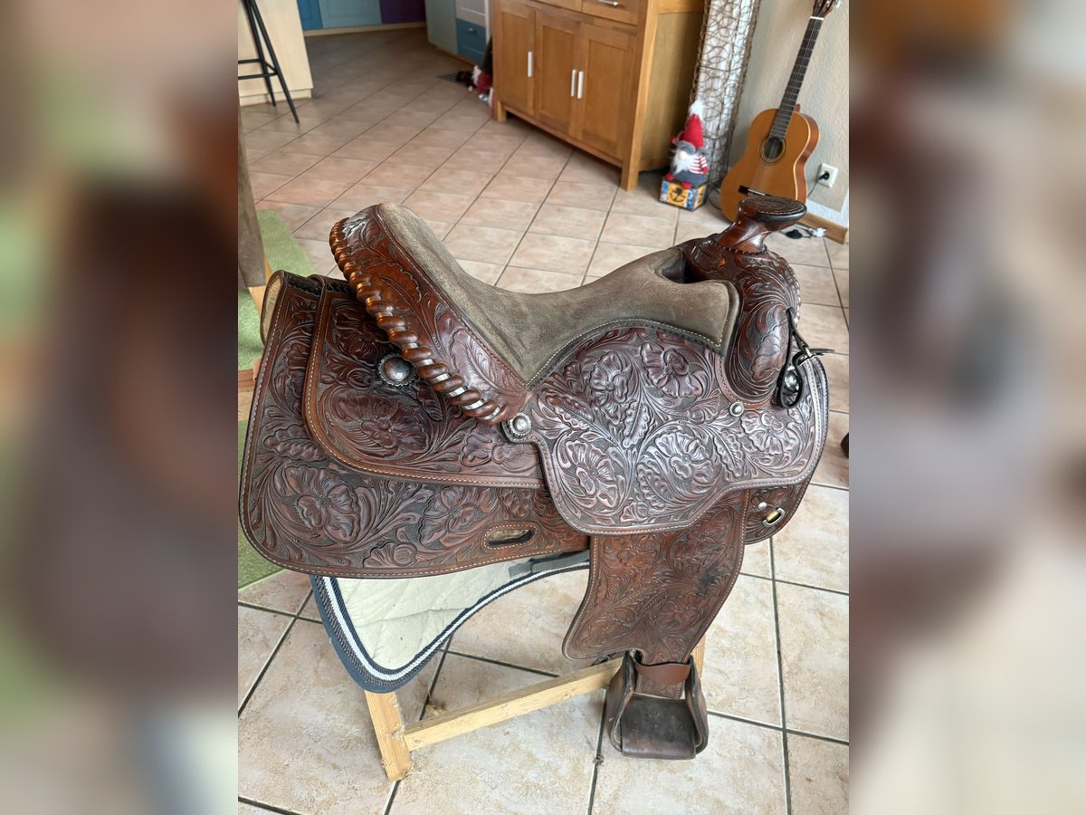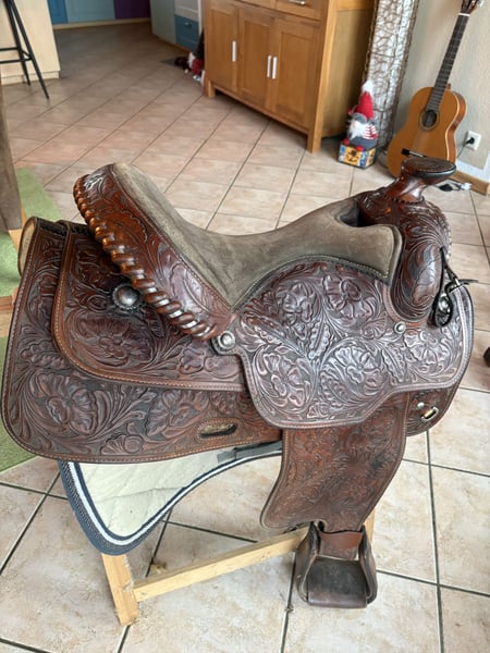 sammlerstück: : Stunning MacPherson Western Show saddle Hand Tooles 16“ Western Show or plesure, floral carved. Ich m gebe meine Sammlung auf. Das Lammfell an der Unterseite ist beschädigt! Privatverkauf: keine Garantie, keine Gewährleistung und keine Rücknahme.