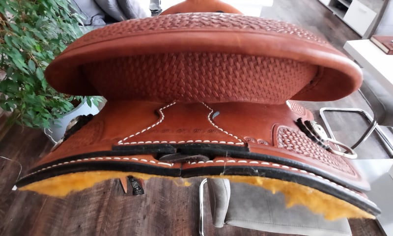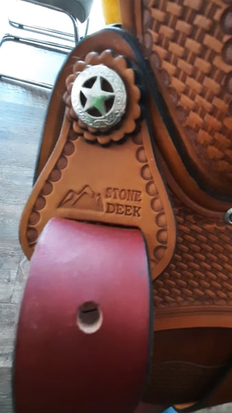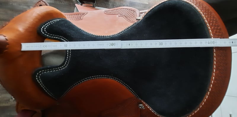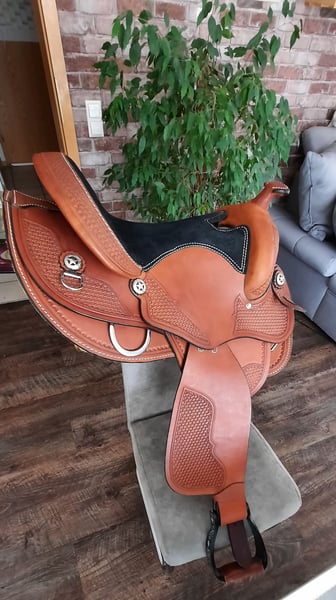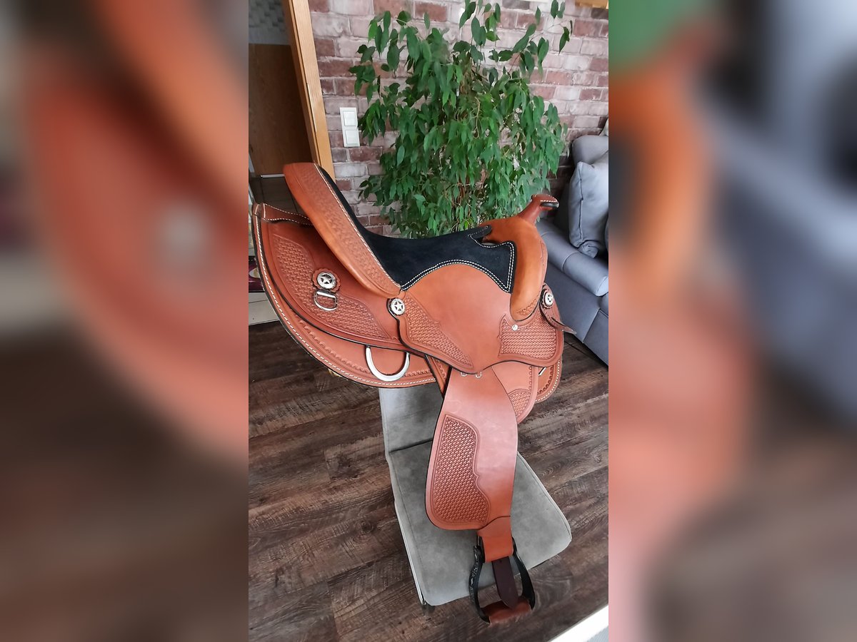 StoneDeek Westernsattel – Qualitätsleder – Wildledersitz – Basket-Punzierung Ich verkaufe einen hochwertigen StoneDeek Westernsattel aus Qualitätsleder. Der Wildledersitz sorgt für guten Halt und hohen Sitzkomfort. Die klassische Basket-Punzierung verleiht dem Sattel eine besonders schöne und hochwertige Optik. Der Sattel wird inklusive Latigo-Riemen (Gurtriemen) abgegeben, der normalerweise separat erhältlich ist. Details • Marke: StoneDeek • Hochwertiges Qualitätsleder • Wildledersitz • Klassische Basket-Punzierung • Fendergleitleder • Sehr angenehmer Sitzkomfort Maße • Sitzgröße: 16" • Concho-Abstand: 21 cm • Gesamtlänge: ca. 64 cm Der Sattel würde stets trocken und geschützt aufbewahrt. Der Verkauf erfolgt ausschließlich, da ich das Reiten aus gesundheitlichen Gründen aufgegeben habe. zuzüglich Versandkosten 23,99€, Abholung möglich Privatverkauf – keine Garantie, keine Rücknahme und kein Umtausch