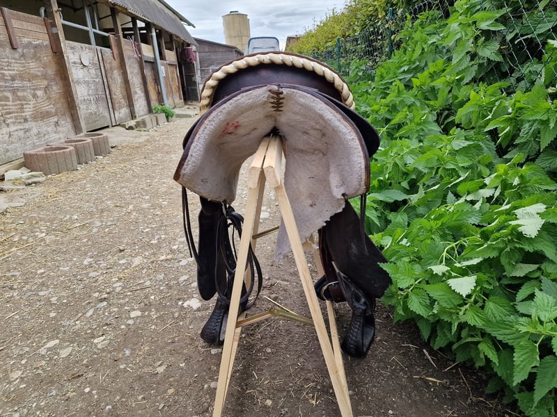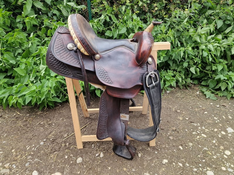 Verkaufe im Auftrag verschiedenes Pferde- und Reitequipment und Schuhe. Der Erlös kommt einer kleinen Ponyreitschule zu Gute. Westernsattel Leder dubkelrotbraun Gebraucht, guter Zustand. Polsterung muss erneuert werden, Leder braucht auf der Innenseite der Steigbügel etwas Pflege. Ich habe ihn einmal grob entstaubt. Wird trocken und wettergeschützt gelagert. Mit Sattelgurt schwarz 60cm. Sitzfläche ca. 45cm Kammerweite ca. 20cm Sattellänge ca. 66cm Alle Angaben ohne Gewähr Versand nur auf ausdrücklichem Wunsch, bei vollständiger Übernahme der Kosten und wenn ich einen geeigneten Karton zur Hand habe! Versandkosten geschätzt, keine verbindliche Angabe! Abholung bevorzugt. Preis ist VB Keine Haftung bei Unfällen! Bitte bei Zahlungen angeben um welchen Artikel es sich handelt + den Zusatz "Schlumpf". Das erleichtert es mir die Zahlungen zuzuordnen Privatverkauf Keine Garantie, Gewährleistung und Rücknahme