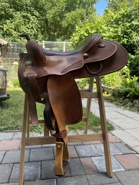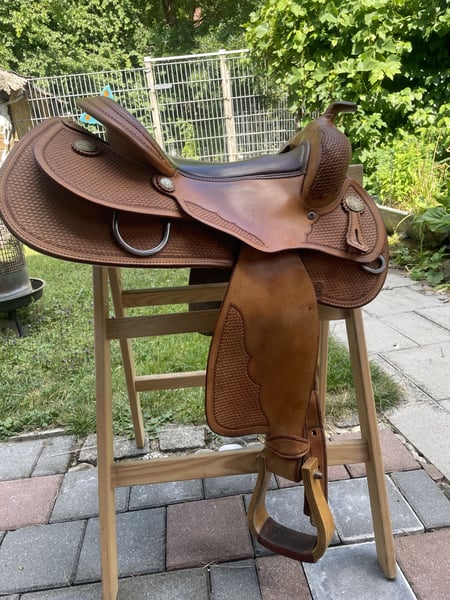 Gebrauchter Tripel W Westernsattel, wie abgebildet (ohne Steigbügel) Normale Gebrauchsspuren, in sehr guten Zustand Bezahlung nur Bar oder per Paypal! Privatverkauf, ich schließe jede Sachmängel aus. Der Artikel wird unter Ausschluss jeglicher Gewährleistung verkauft und wird nicht zurückgenommen!
