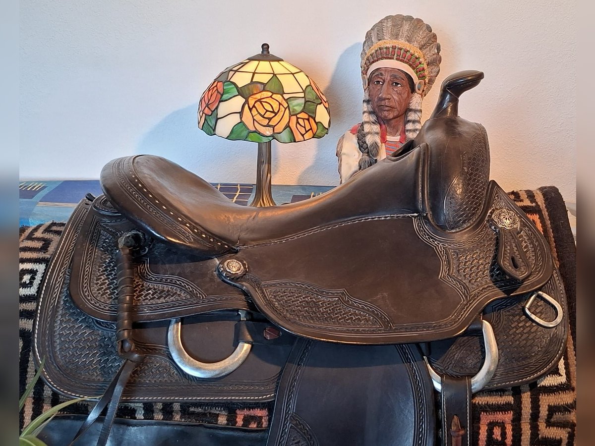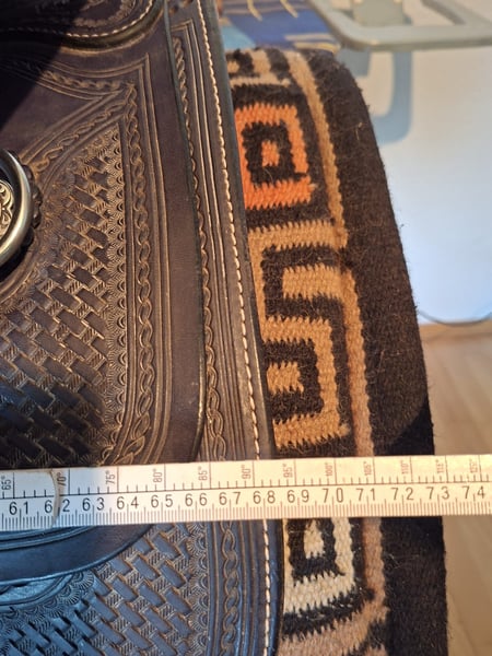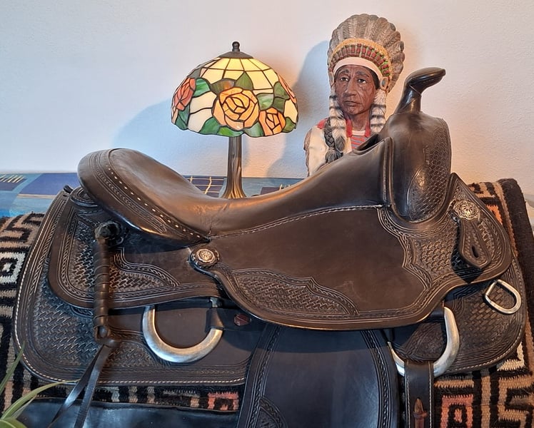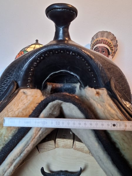 ********** solange die Anzeige online ist, ist sie auch aktuell ************ Fragen wie „noch da“ o.ä. werden daher nicht beantwortet. Bitte lesen Sie den Text gründlich. Für weitere Fragen stehe ich gern zur Verfügung. Schicker, sehr gepflegter, schwarzer Westernsattel im Ranchstyle, made by WayOutWest. Es handelt sich hier um einen sehr hochwertigen Sattel. Geschmeidiges, hochwertiges Leder und KEIN Kellermuff. Super bequem und stabil. Für lange Geländeritte, aber auch für Ranchriding, Reining, Rinderdisziplinen oder für Jungpferde bestens geeignet. -SQ Holzbaum (!) Der Vorbesitzer hat den Equiflex Baum durch einen hochwertigeren Holzbaum austauschen lassen. -super bequemer 16,5“ (42 cm) gelgefütterter Sitz, perfekt für lange Ritte. -sehr hochwertige, seltene, schwere Buckaroo Steigbügel, passend zum Sattel, ebenfalls perfekt für lange Ritte -Fender sind getwisted, dadurch hängt der Steigbügel immer im perfekten rechten Winkel, sicher und angenehm für die Knie -Echtfell Linning Maße: Gesamtlänge 68 cm, damit auch für nicht ganz so lange Pferde geeignet Abstand zwischen den Conchas ca. 19 cm Folk Höhe ca 10 cm, daher auch für Pferde mit etwas mehr Widerrist gut geeignet Trittbreite Bügel 10 cm Gesamtgewicht 13 kg, wobei das Gewicht der Bügel da auch zu Buche schlägt Der Sattel wird nicht versandt, weder zur Anprobe noch bei Verkauf! Er kann besichtigt und abgeholt werden am Kreuz Wuppertal Nord oder in Remscheid. Im näheren Umkreis, komme ich gern zur Anprobe raus, ansonsten gegen Aufwandsentschädigung. Gegen Hinterlegung des vollen Kaufpreises kann der Sattel zur Anprobe mitgenommen werden. Da ich Privatverkäufer bin, erfolgt der Verkauf nach „gekauft wie gesehen“ Der Verkauf erfolgt unter Ausschluss jeglicher Sachmängelhaftung. (die Haftung auf Schadenersatz wegen Verletzung von Gesundheit, Körper oder Leben und grob fahrlässiger / vorsätzlicher Verletzung meiner Pflichten als Verkäufer bleiben davon unberührt)