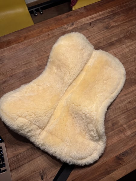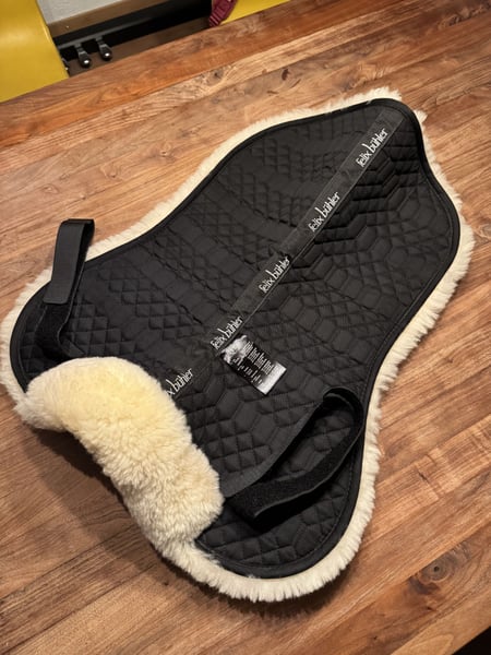 Sattelpad mit komplettem Besatz aus medizinischem Lammfell und Felleinfassung vorne, kurz geschorenes Fell entlang der Wirbelsäule, Sattelschlaufen mit Klettverschluss Rückenlänge 57cm Fell: 100% Merino-Lammfell waschbar bei 30° Neuwertig (nur wenige Male gebraucht) Neupreis: CHF 119