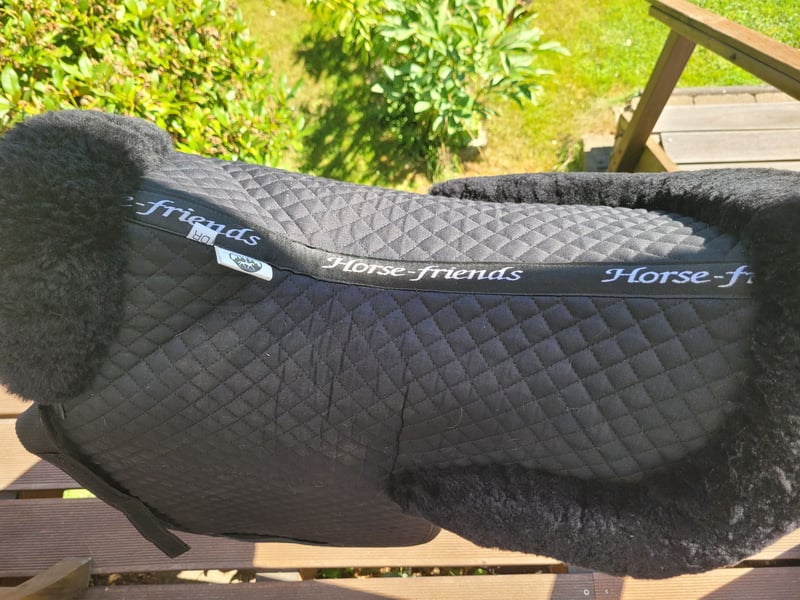 Wegen neuem Sattel neuwertige DS Warmblut Lammfellsatteldecke incl Lammfellkurzgurt 60cm mondform zu verkaufen.