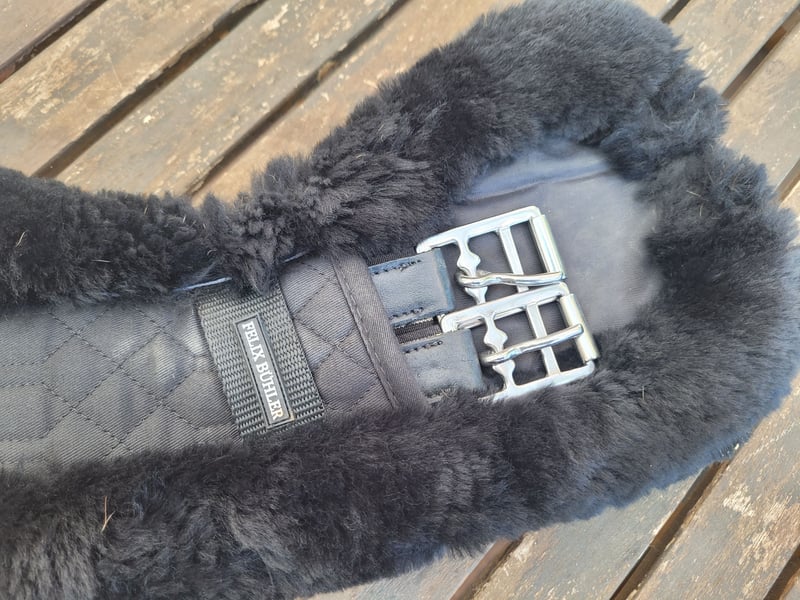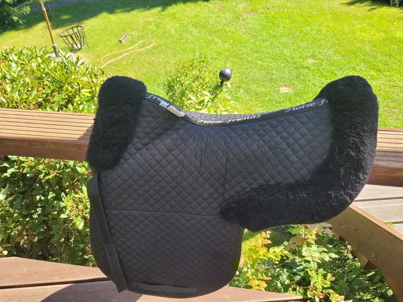 Neuwertige Lammfellsatteldecke WB, DS inkl Lammfellkurzgurt 60cm mondform Felix Bühler