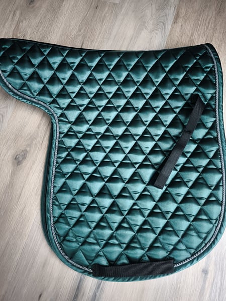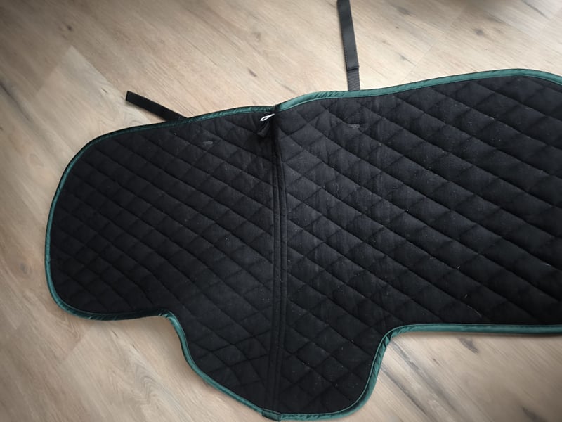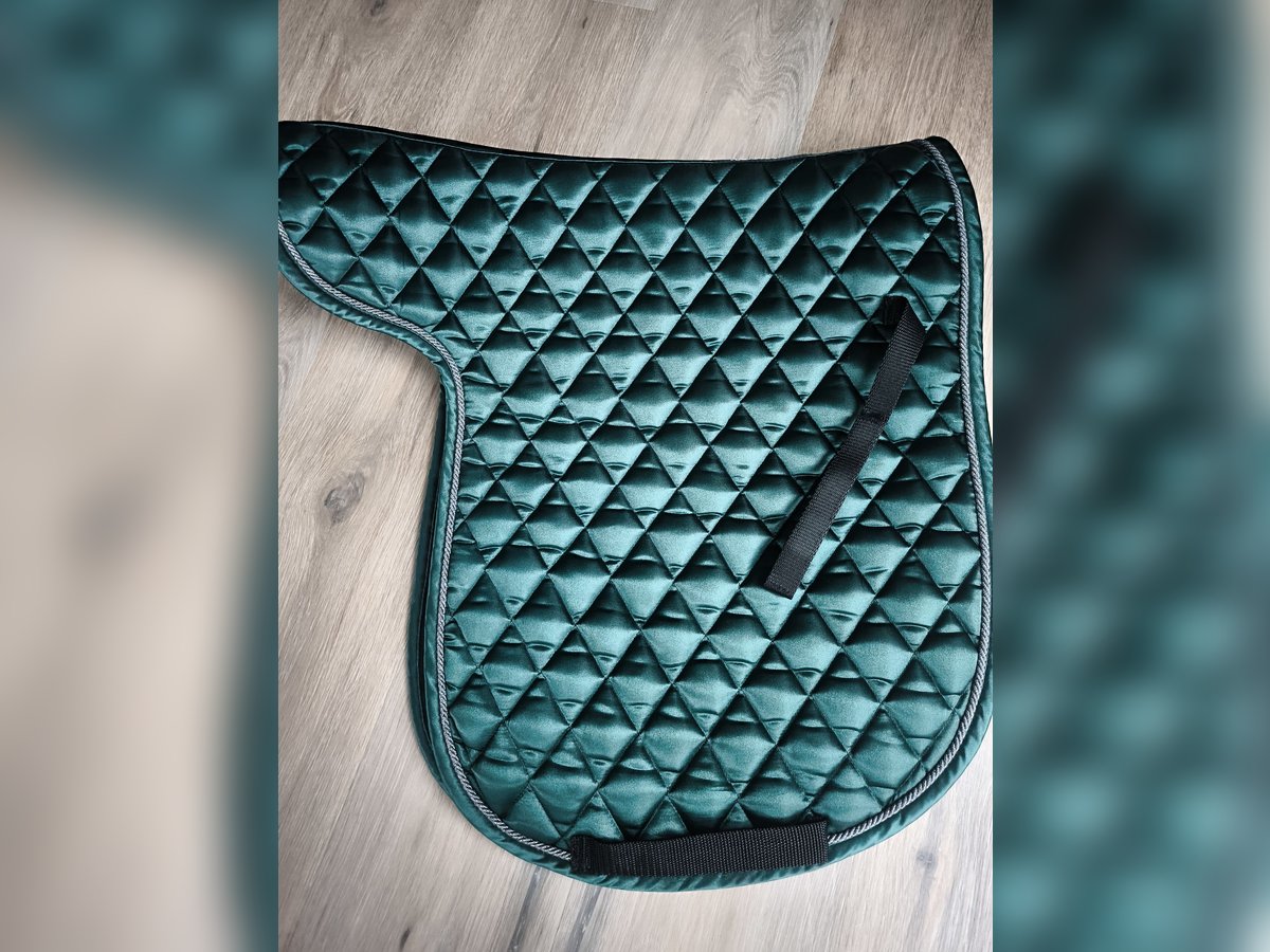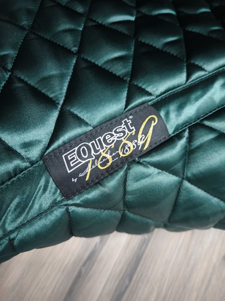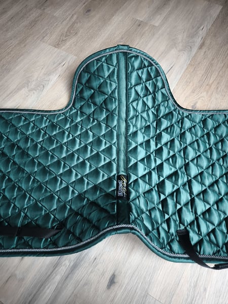 Verkaufe Satteldecke von Equest, wie neu, nur wenige Male genutzt, frische gewaschen. Satteldecke flaschengrün Satin Kordel anthrazit Unterseite Molton Rückenlänge: ca. 54,5cm Blattlänge: ca. 55cm Blattbreite: ca 42,5cm