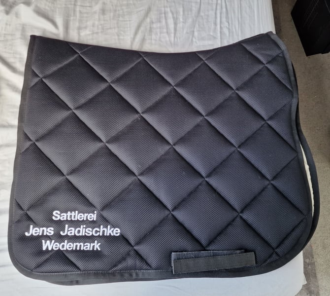 Privatverkauf Verkaufe Dressur Schabracke Leider ist auf der einen Seite der Name des Sattlers Ich habe für die Schabracke selber 60€ bezahlt Farbe schwarz