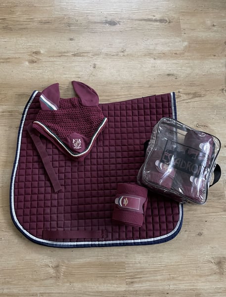 Ich verkaufe dieses Set von Eskadron Farbe: offiziell heißt diese Farbe brickred (dunkelrot, weinrot) Größe Warmblut Schabracke: Dressur, war nicht oft am Pferd, sehr guter Zustand Fliegenohren: nur 2x am Pferd, wie neu Bandagen: nur 2x am Pferd, wie neu Alles frisch gewaschen, Zustand siehe Bilder Schabracke: 20€ Fliegenohren: 15€ Bandagen: 10€ Als Set: 40€ Bei Fragen gerne bei mir melden :) Kann abgeholt werden, oder bei Kostenübernahme mit Versand