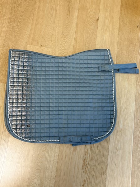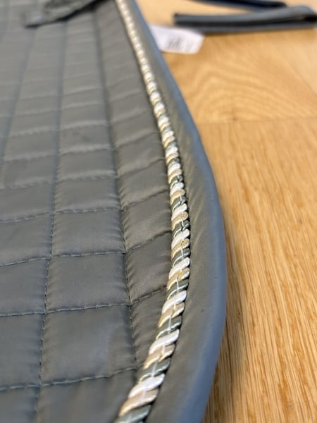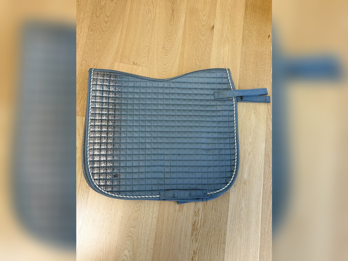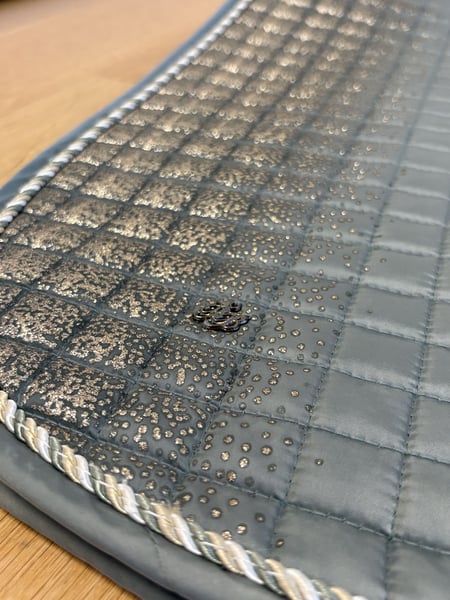 Felix Bühler Schabracke 1 Nutzung Neupreis:45€ Großpferd Grün mit Roségold Glitzer Weiß,Beige und Samtgrüne geschwungene Naht