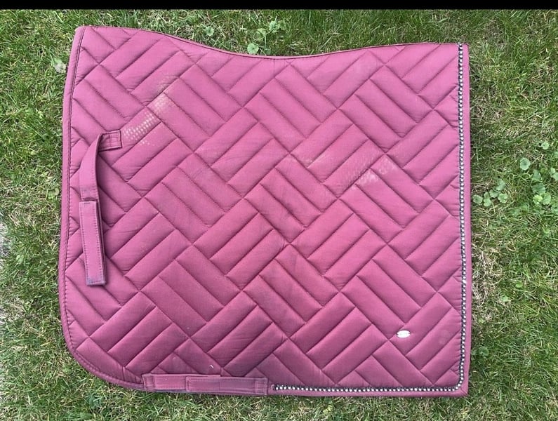 Ich verkaufe hier meine bordeaux-rote Schabracke in Dressur. Größe WB. Es fehlen keine Glitzersteine. Passend dazu vorhanden: 4x Bandagen, Halfter, Gamaschen, Streichkappen Privatverkauf, daher keine Garantie oder Rücknahme. Versand gegen Kostenübernahme möglich.