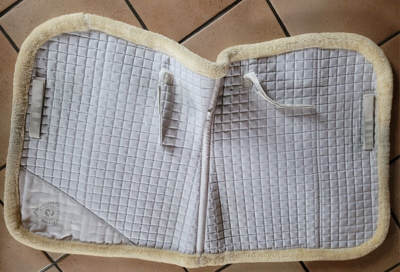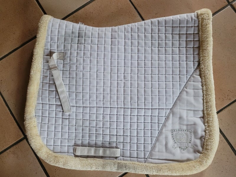 Sie bieten hier auf eine gebrauchte weiße Dressur Schabracke mit kleinem Strass-Logo innen ist die Schabracke halber mit Fell gefüttert (siehe Foto) ideal für den Fellwechsel oder bei empfindlichen Pferden maschinenwaschbar bei 30 Grad NP lag bei 89 Euro