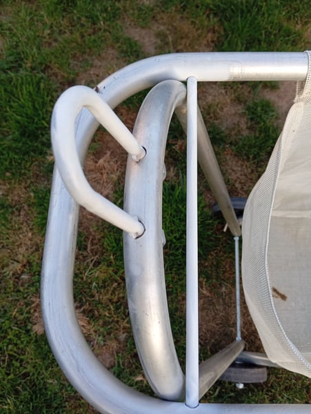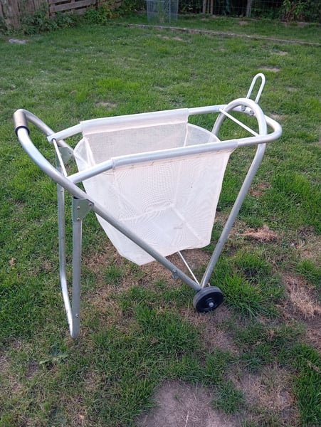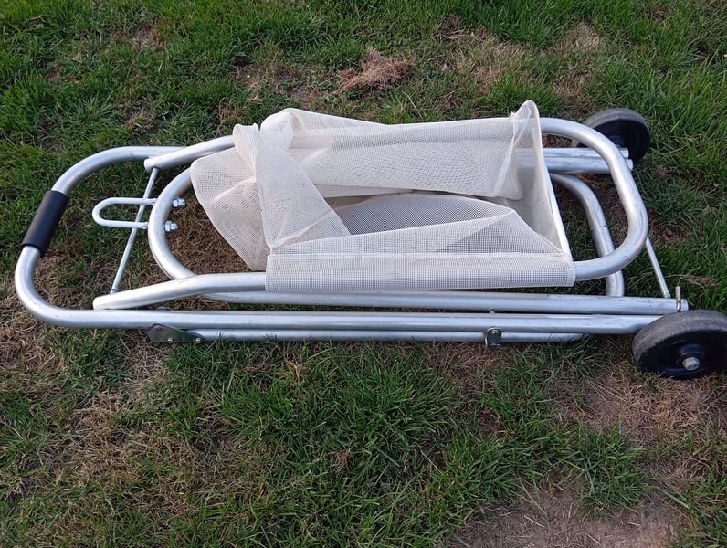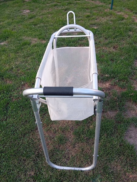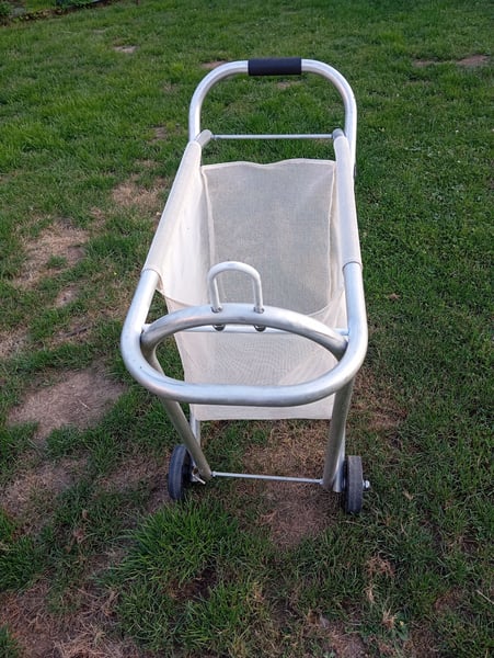 Zusammenklappbarer Sattelwagen. Verfärbungen am Netz. Siehe Fotos. Querstange und Bogen nachlackiert. Siehe Fotos. Versand gegen Portoübernahme möglich