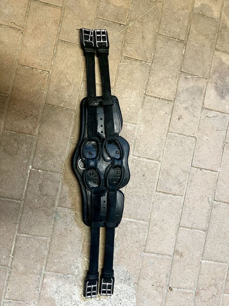 Bei dem Equi-Soft Sattelgurt von Stübben handelt es sich um einen Kurzgurt mit einem genialen und exklusiven System aus elastischen Bändern. Durch dieses System und den speziellen Schnitt des Gurtes wird eine optimale Druckverteilung garantiert, der Brustkorb des Pferdes kann sich optimal ausdehnen und das Brustbein wird entlastet. Somit eignet sich dieser Gurt auch für druckempfindliche Pferde und sie haben eine freiere Atmung. Auf der Unterseite kann man mithilfe eines Klettverschlusses verschiedene Polsterungen anbringen, um so Druck- und Scheuerstellen zu verhindern oder zu minimieren. Länge des Gurtes 80 cm Ein weiteres Lammfellpad kann auch separat erworben werden.