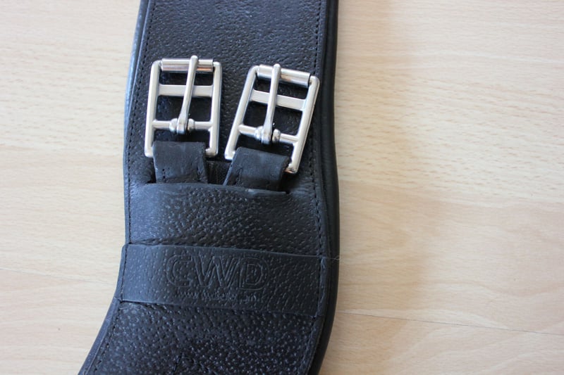 Neuwertiger Ledersattelgurt von CWD. Kurzgurt 75 cm. Von Schnalle zu Schnalle 56 cm. Privatverkauf, daher keine Garantie und keine Rücknahme. Gerne versenden wir den Gurt gegen Aufpreis der Versandgebühren.