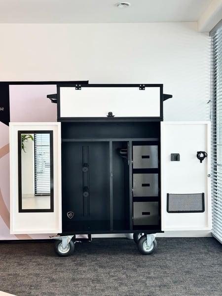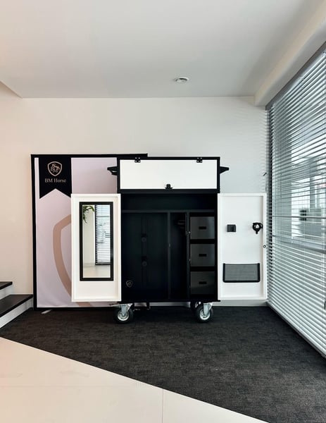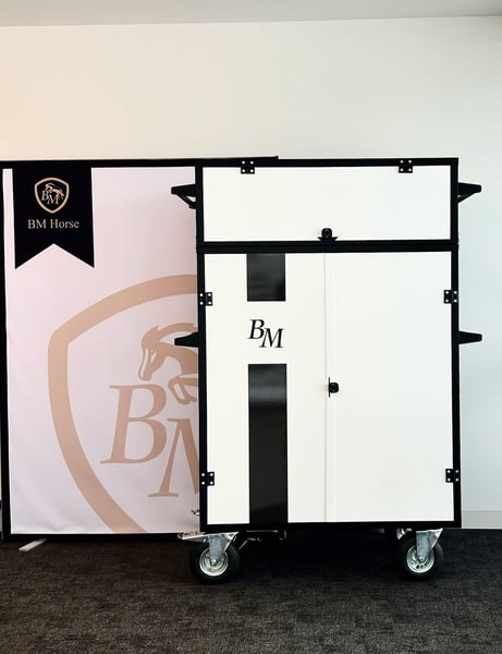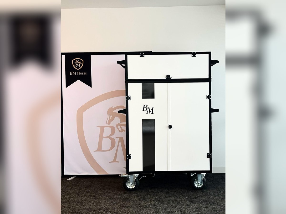 Luxuriöser Sattelschrank aus leichtem Aluminium, veredelt mit Wrapping-Folie (3 Farben zur Auswahl). Ultraleicht, funktional und robust – ideal für Stall, Turniere und den täglichen Einsatz. Der abnehmbare Aufsatz ermöglicht eine schnelle Anpassung des Stauraums. Ausstattung: * Verstellbare Sattelhalter * Oberes Staufach + abnehmbarer Aufsatz * 3 selbstschließende Schubladen * Ausziehbarer Trensenhalter * Zusätzliche Halter + Handyhalter * Zubehörtasche * Spiegel * Elektronisches Zahlenschloss * LED-Beleuchtung * Breite, luftgefüllte, schwenkbare Räder Personalisierung: * Logo • Flagge • Name & Nachname • Clubname