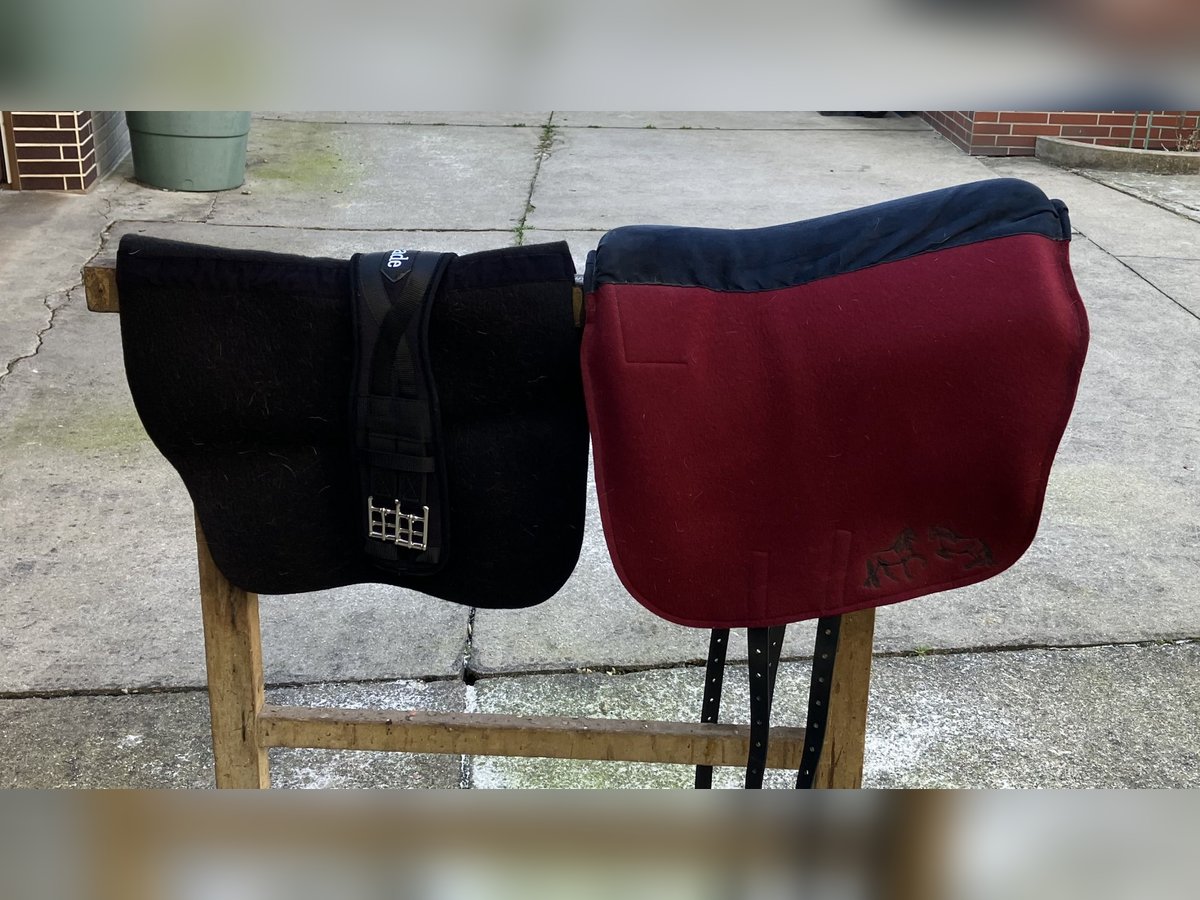 Der Sattel und die Decke sind von Isabell Steiner, Saffa Skuggi Comfort Plus. Die Kombination schwarz/bordeaux war eine Sonderfarbe, passend schwarz auch die Decke, ebenso Sonderfarbe. Der Sattel war auch nie ohne Decke auf meinem Pferd. Der Sattelgurt ist von Kavalkade, 75 cm. Decke und Sattelgurt wurden gewaschen, die Haare sind leider nicht ganz weg, aber immerhin gewaschen . Die Rückenlänge des Sattels beträgt 50 cm, die Seiten ca. 45 cm. Versand zuzüglich Versandkosten per Vorauszahlung, Überweisung oder Paypal, möglich. Privatverkauf ohne Gewährleistung, Garantie oder Rücknahme.