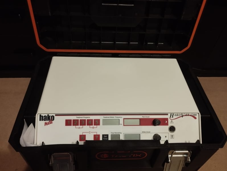 Ich verkaufe mein Hakomed HakoVet 1.200, dass ich 01/2023 direkt bei Hakomed gekauft habe. Es wurde wenig benutzt und ist somit in einem hervorragenden Zustand. Verkauft wird es mit Ladekabel, Adapter, Kabel (5 STK.), Pferdezubehör, Kleintierzubehör, Bedienungsanleitung, Schutzkoffer ( leichter Riss, Funktion nicht beeinträchtigt). Pferdezubehör beinhaltet: 1 Bauchgurt Baumwolle 4 Beingurte Baumwolle 4 Elektrodenpads 6 Hufklebepads 4 Schwämme (sollten ersetzt werden) Kleintierzubehör beinhaltet: 4 Beingurte Baumwolle 4 Elektrodenpads Mini 4 Schwämme Mini = Komplett neu und unbenutzt Versand möglich. Mit zusätzlicher Transportversicherung ca 30€ - 40€ (Versand schon inbegriffen)zzgl zum Kaufpreis. Neupreis: 4350€ Verkaufspreis: 3000€ zzgl Versand Privatverkauf keine Garantie/Rücknahme oder Umtausch.