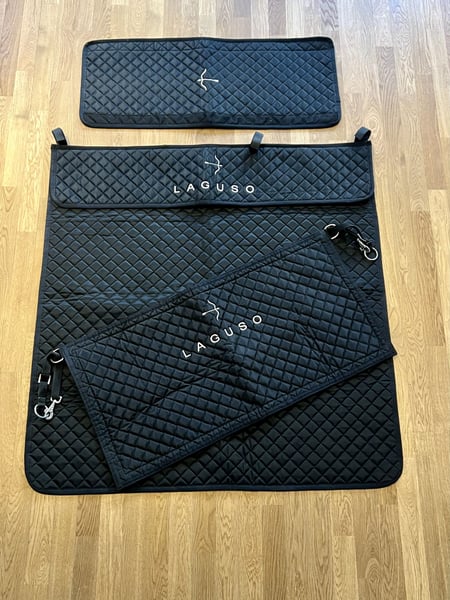 Verkaufe mein Set von Laguso. 3 verschiedene Sachen. 1. Boxentürvorhang 2. Kopfschutz für Boxentür 3. Stallvorhang. Das Set gibt es so nicht zum Kauf bei Laguso, da es nur Teamreiter bekommen. Es ist alles in einem top Zustand. Bei Fragen gerne melden.
