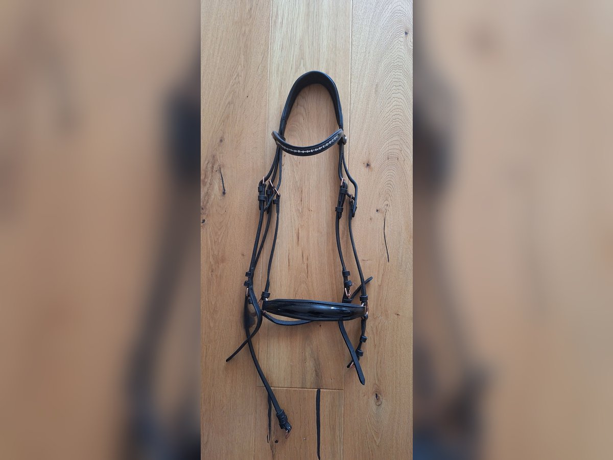 Verkaufe eine Hannoversche Trense mit Lack und rosegoldenen Schnallen, wurde als WB gekauft, passt unserer Stute leider nicht. Lag nur zum anprobieren auf dem Pferd. Versand bei Übernahme der Kosten möglich. Privatverkauf ohne Garantie oder Rücknahme.