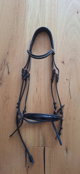 Hannoversche Trense mit Lack und rosegoldenen Schnallen