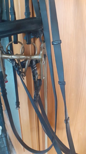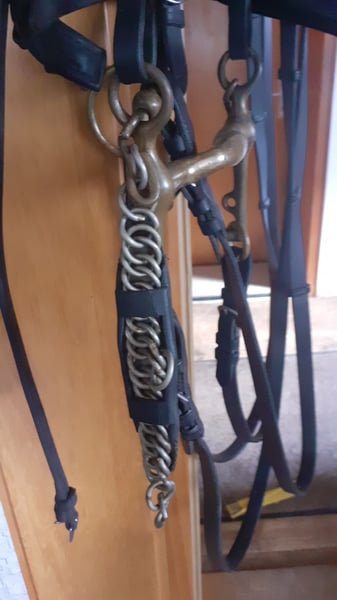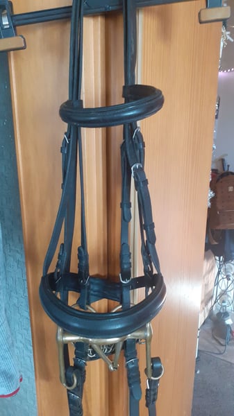 Kompletter Kandarenzaum - Dressurkandarenzaum - Gr. WB - Leder schwarz - HS Sprenger Aurigan dressurkandare 14cm - HS Sprenger Aurigan Unterlegtrense 14cm - Lederzügel 1x m. Steg 1x glatt - Kinokarten Wurde nur 2-3 mal für Shooting genutzt. Wurde im Haus gelagert und Leder ist gepflegt. Sehr guter neuwertiger Zustand. Der Preis ist VB - gerne realistisches Angebot machen.
