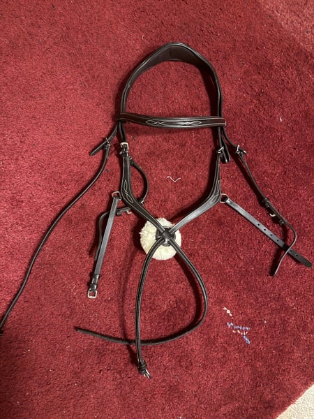Die Mexikanische Trense von Horze in der Farbe Braun und Grösse Warmblut muss ich leider Verkaufen da sie meinem Pferd nicht gepasst hat. Somit wurde sie auch nur ein Paar Minuten am Pferd gelassen und ist in einem neuen Zustand. Jedoch haben wir um sie zu vergrössern mit einer Lochzange ein paar weitere Löcher in die Trense gemacht, was diese aber nicht beschädigt. Bei weiteren Fragen oder Interesse stehe ich ihnen gerne zur Verfügung