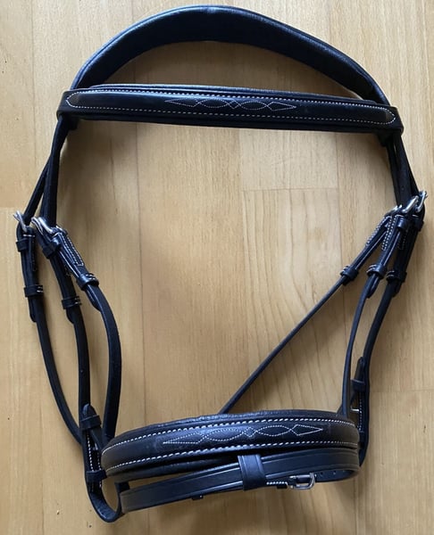Trense Schwarz/Weiß WB Sehr Weiches Leder + passende Zügel. Neu! Keine Garantie und Rücknahme!