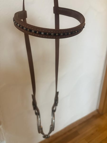 Wunderschöne Biothan Trense der Marke Flottur meiner ehemaligen Isi-Stute in sehr gutem Zustand trotz Benutzung für ca. 2 Jahre. Tolles Material, sehr geschmeidig und fein. Ich habe sie sehr gerne genutzt und war äußerst zufrieden. Die Strasssteine sind schwarz und transparent, sehr edel mit den weißen Nähten.