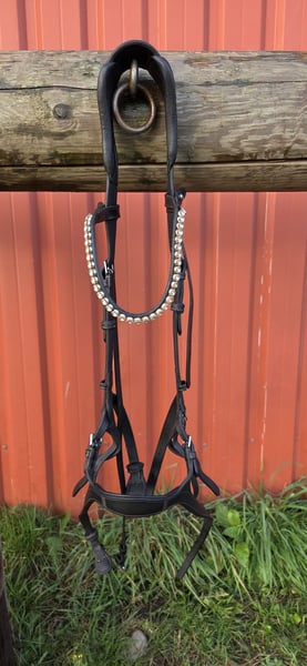 Ich verkaufe eine Trense von Ps of Sweden. Modell Nirak, Größe 3/Full. Trense wird mit glitzer Stirnriemen und einen abnehmbaren Kehlriemen verkauft, damit die Trense laut LPO auf Turnier zugelassen wird. Der Kehlriemen kann einfach und schnell durch das Klicksystem beim Stirnriemen an und abgebaut werden. Die Trense ist in einem guten Zustand und wurde ordentlich gepflegt. Lediglich eine Schlaufe ist ein bisschen eingerissen, welches auf dem Foto erkennbar ist. Neupreis Trense: 299€ Neupreis Kehlriemen: 19€ Neupreis Stirnriemen: 69€ Privatverkauf, daher keine Rücknahme, Gewährleistung und Garantie Folgende Bezahlung ist möglich: - Barzahlung bei Abholung - Paypal Freunde - Vorabüberweisung