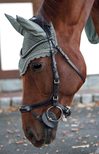 SCHOCKEMÖHLE EQUITUS OMEGA ANATOMISCHE SPEZIALTRENSE - SCHWARZ/SILBER, WB Original Stirnriemen vorhanden, siehe Foto. Rivoli Stirnriemen, tief geschwungen von Ivy Horsefashion könnte mit erworben werden. NP: 300€ Stirnriemen Ivy: 89€ (Mit Ivy Stirnriemen 200€) Beschreibung: Die EQUITUS Familie von Schockemöhle Sports wächst! Das neue Modell EQUITUS OMEGA basiert auf der EQUITUS ALPHA. Die Backenstücke werden hier allerdings mit Hilfe einer Schnalle befestigt. Wie bei allen Modellen der EQUITUS Linie wird auch hier mit Hilfe der innovativen Linienführung, die bis ins kleinste Detail auf die Anatomie des empfindlichen Pferdekopfes abgestimmt ist, der Druck genau an den richtigen Stellen reduziert und gleichzeitig optimale Bewegungsfreiheit garantiert. Das geschwungene Reithalfter, welches den Hauptgesichtsnerv des Pferdes umgeht. Da die Backenstücke direkt am Reithalfter befestigt sind, liegt das Gebiss stabil im Pferdemaul. Zudem werden die Zügelhilfen ebenfalls als sanfter Impuls auf die Pferdenase übertragen, so ist eine besonders feinfühlige und effektive Hilfengebung möglich. Das weich unterlegte und ebenfalls anatomisch geformte Genickstück gibt den Ohren maximalen Spielraum und entlastet das Nackenband. Wortwörtlich genügend Platz zum Atmen hat ihr Pferd dank des neu positionierten Sperrriemens. Und schließlich verhindert das geschwungene Stirnband, das bei der neuen EQUITUS OMEGA mit hübschen Clinchen verziert ist, durch die extra-weite Passform unangenehmen Druck im Bereich von Augen und Ohren. anatomische Spezialtrense mit neuartiger Passform geschwungenes Reithalfter umgeht den Hauptgesichtsnerv weich unterlegtes Genickstück mit viel Ohrenfreiheit geschwungenes Stirnband mit extra-weiter Passform zur Vermeidung von Druck im Augen-Ohren-Bereich freie Atmung durch neu positionierten Sperrriemen Befestigung der Seitenteile mit Schnallen Zzgl. Versand