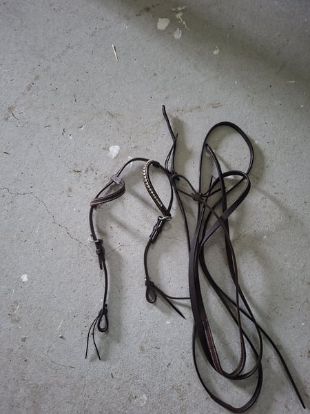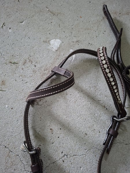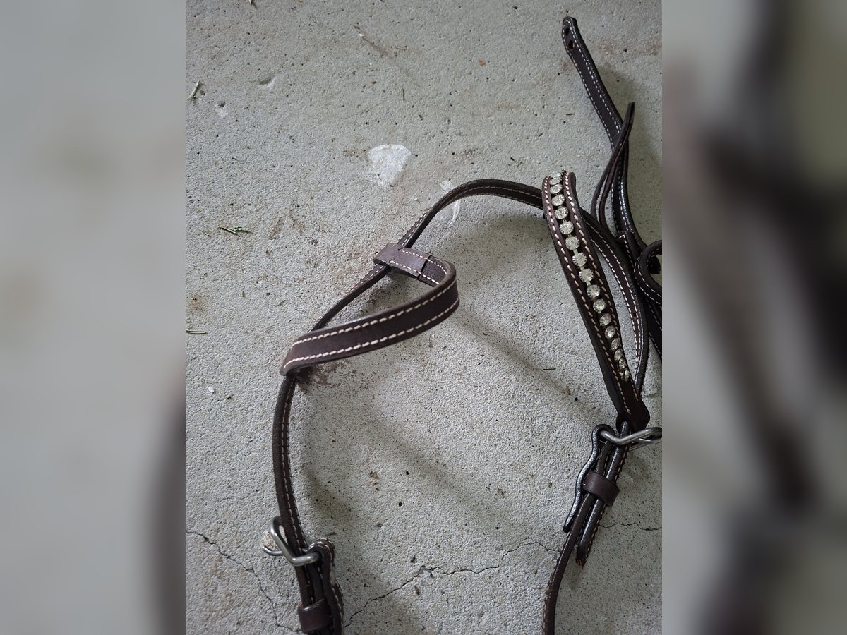 Verkaufe komplett neue Einohrwesterntrense mit Ersatz Glitzer Ohr Neue Zügel sind auch dabei in Länge 180cm Die Trense ist Größe Cob Lag einmal am Pferd zum anprobieren