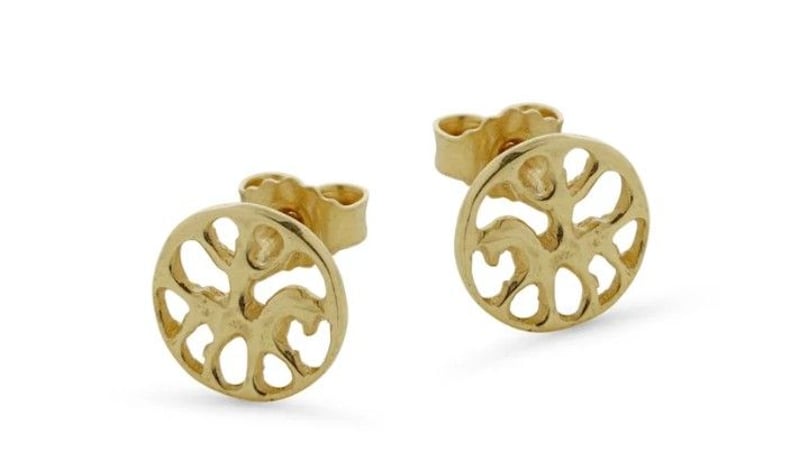 Anhänger: Höhe von 2,6cm, eine Breite von 2,9cm und eine Tiefe von 7mm. Der Anhänger ist aus massivem Sterlingsilber gefertigt und dann galvanisch vergoldet Ohrstecker: haben einen Durchmesser von 1cm und eine Tiefe von 1,5mm. Die Ohrringe sind aus massivem Sterlingsilber gefertigt und dann galvanisch vergoldet