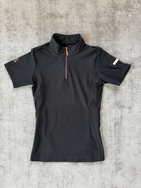 Funktionsshirt mit Mesheinsatz unter Achseln von HorseGloss in Schwarz mit Rosegold. Ca. 2-3x getragen. Privatverkauf daher keine Garantie, Gewährleistung oder Rücknahme