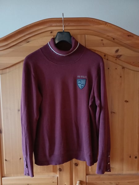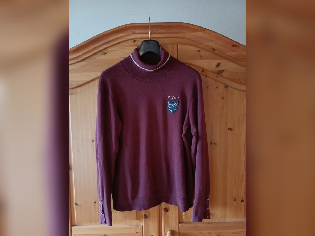 Ich verkaufe meinen super schicken HV POLO Rollkragenpullover. Modell "MABLE". In der Farbe Dark Berry. Er ist wie Neu!! Der Pullover hat eine feine Lurexkante am Rollragen, Ien mit Glitzer und Straßsteinchen besetztes Brustlogo und Zierknöpfe an den Ärmeln. Größe XL. gesamtlänge 64 cm, Brustweite 52 cm und Ärmellänge 61 cm. Preis 47,- Euro, zzgl. 3,- Euro Versand. Bei Interesse freue ich mich über eine Nachricht von Ihnen.