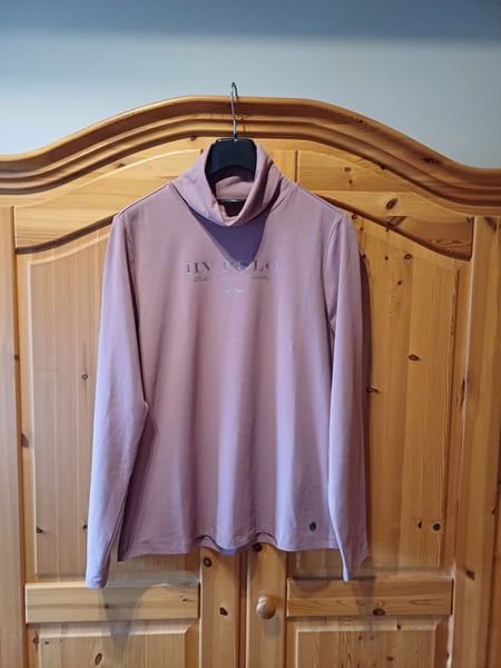 Ich verkaufe mein super schickes HV POLO Rollkragenshirt. Modell "ADELINE". In der Farbe "MAUVE". Es ist Neu!! Mit Etikett! Aus 95 % Baumwolle und 5 % Elasthan. Das Shirt hst feine Glitzersteinchen auf dem Brustlogo. Größe XL. Gesamtlänge 64 cm, Brustweite 52 cm und Ärmellänge 61 cm. Preis 47,- Euro, zzgl. 3,- Euro Versand. Bei Interesse freue ich mich über eine Nachricht von Ihnen.