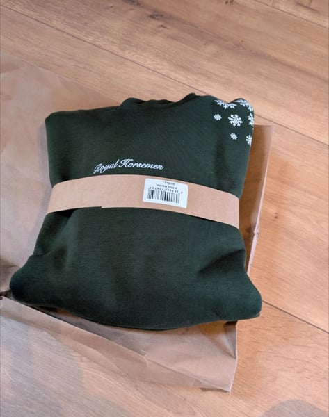 Limited Edition Xmas Hoodie von Royal horsemen in grün, Größe L. Super süßer Aufdruck auf der linken Schulter und der Rückseite. Neu und ungetragen. Er ist mir leider zu groß (passt vermutlich 40/42 oder oversize) und Umtausch nicht möglich da vergriffen. Vielleicht sucht jemand genau diesen, dann brauche ich ihn nicht kostenpflichtig zurück senden. Hatte ihn mit black week Rabatt bestellt, daher hier günstiger. Neupreis regulär 59,99€ nachhaltige Produktion super kuschelig schönes Design Unisex geschnitten Material: 70% Baumwolle, 30% Polyester Waschanleitung: Bei 30°C auf links mit ähnlichen Farben waschen. Keinen Weichspüler verwenden. Bitte nicht in den Trockner legen! #royalhorsemen #passionpferd #horse #pferd #pony #santa #cheval #xmas #weihnachtspullover #pikeur #ariat #loesdau #messe #reiten #weihnachtsgeschenk