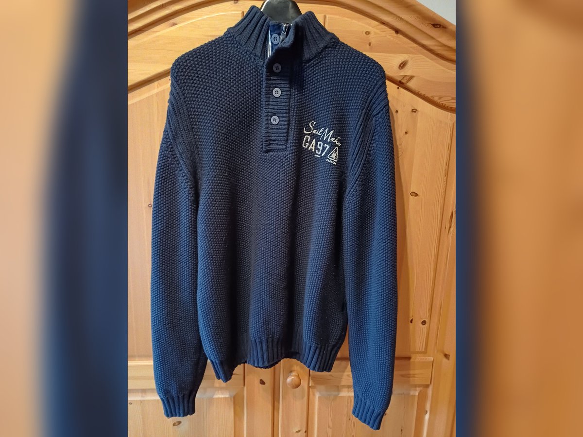 Ich verkaufe meinen super schicken GAASTRA Pullover. In der Farbe Dunkelblau. Er ist Neu!! Der Pullover ist aus 100 % reiner Baumwolle. Grob gestrickt. Mit einer Knopfleiste und darunter ein Reißverschluss am Revers. Er hat Stickereien am Brustlogo. Locker geschnitten. Größe XL. Gesamtlänge 74 cm, Brustweite 55 cm und Ärmelänge 63 cm. Preis 90,- Euro, zzgl. 7,- Euro im versicherten Versand per Dhl. Bei Interesse freue ich mich über eine Nachricht von Ihnen.