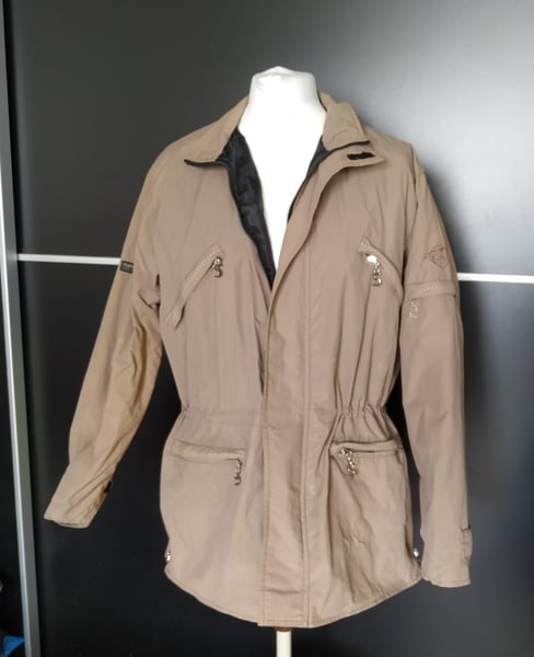 Leichte Regen-Jacke mit durchgehenden & verdeckten Reißverschluss, vorne mit Klettverschlüssen, 4 Taschen vorne und 1 Innentaschen für Brieftasche mit Reißverschlüssen, verstellbarer Ärmelbund mit Klettverschlüssen, Jacke läßt sich seitlich mit Reißverschlüssen etwas öffnen, ideal für Reiter. 100% Polyester, von Frank Sommer Sportswear Winddicht Regenfest Wasserabweisend Neupreis ähnlicher Artikel im Handel: ca. 40 Euro